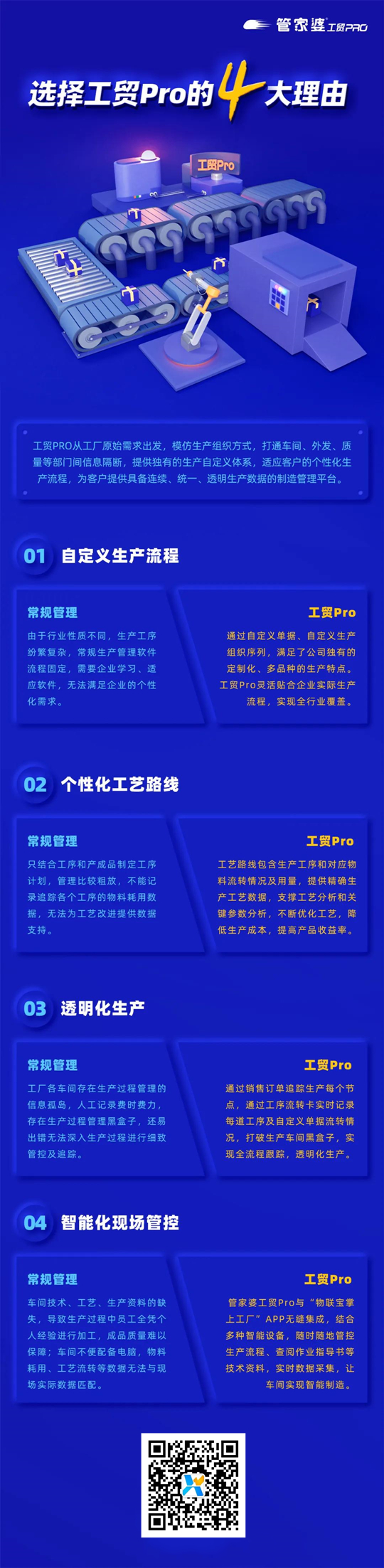 工貿(mào)pro 從工廠原始需求出來,模仿生產(chǎn)組織方式,打通車間、外發(fā)、質(zhì)量等部門間信息隔斷,提供獨有的生產(chǎn)自定義體系,適應(yīng)客戶的個性化生產(chǎn)流程,為客戶提供具備連續(xù)、統(tǒng)一、透明生產(chǎn)數(shù)據(jù)的制造管理平臺。更多詳情咨詢本地代理商(蘇州):