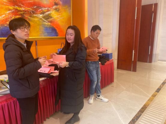 客戶陸陸續(xù)續(xù)進(jìn)場,接待客戶,我們也絲毫不會(huì)懈怠呢,每個(gè)客戶簽到結(jié)束時(shí),我們?cè)俜钌鲜苣甑亩Y品,滿滿的心意!