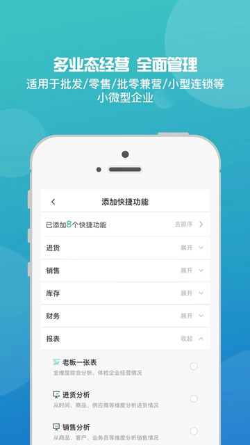 管家婆ishop手機端:旅行、出差、外勤辦公,登錄管家婆ishop手機端,隨時查數(shù)據(jù)、查庫存,掌握經(jīng)營狀況。