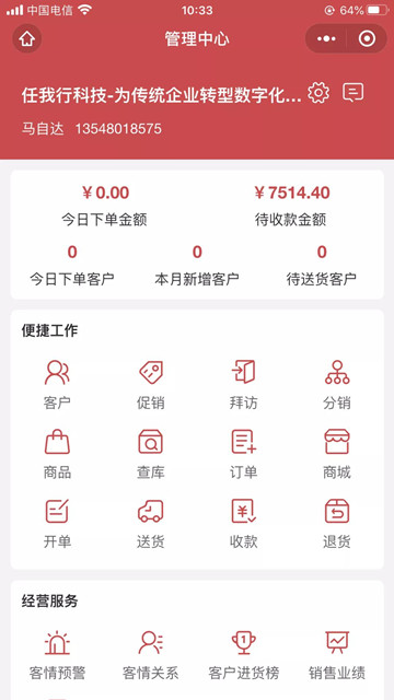 6.移動BOSS,經(jīng)營數(shù)據(jù)一手掌控。無需打開電腦,只需一部手機即可搞定商品快速添加、上下架銷售,并實現(xiàn)手機開單、發(fā)貨、收款、對賬,以及上門自提、掃碼核銷、售后處理等一系列后端管理業(yè)務。老板雷達、新客到店、客情預警、熟客回頭了然于心,不用再耗費大量精力盤算,決策更科學。