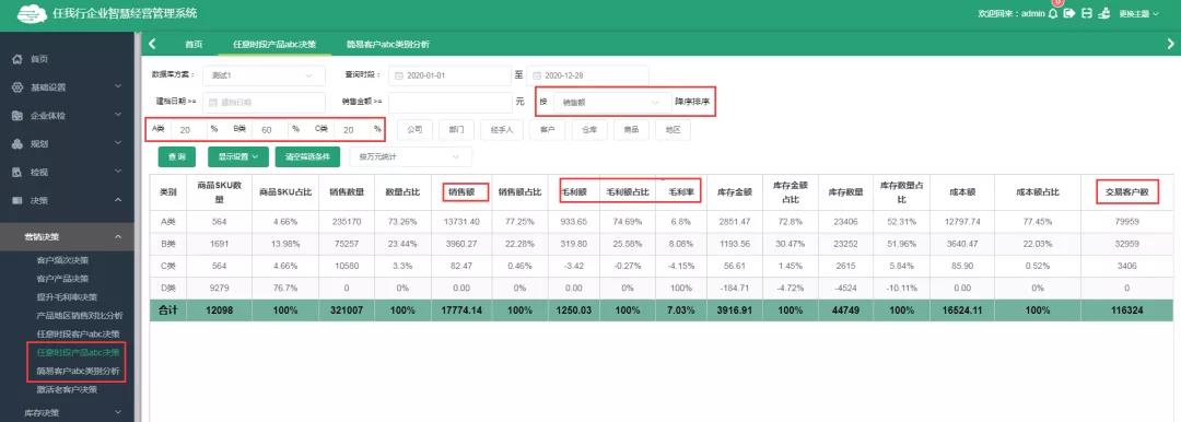 數(shù)字化時(shí)代,萬事萬物正在走向互通互聯(lián),產(chǎn)品與商業(yè)模式創(chuàng)新與傳統(tǒng)經(jīng)濟(jì)相比發(fā)生了質(zhì)的變化,源源不斷地產(chǎn)生著海量數(shù)據(jù),這些數(shù)據(jù)和資本類似,成為企業(yè)重要的核心要素,蘊(yùn)藏著巨大的價(jià)值潛力。如何從海量的數(shù)據(jù)中實(shí)時(shí)抓取對決策支持最重要的數(shù)據(jù)和信息,幫助管理者更加智慧決策?任我行企業(yè)智慧經(jīng)營管理系統(tǒng)(簡稱:天通眼)給您答案。 1.任意時(shí)段簡易產(chǎn)品\客戶ABC決策