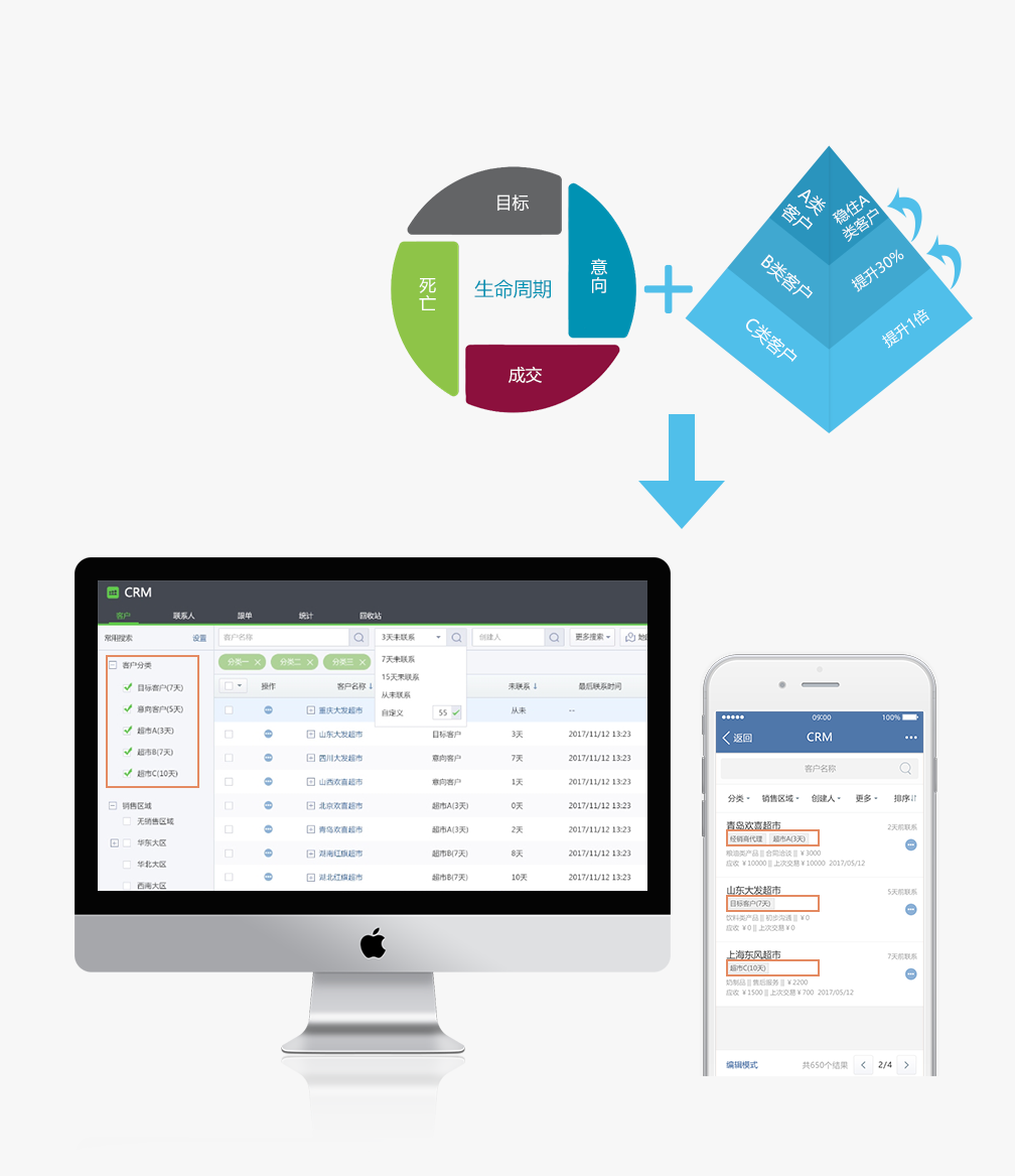 ——讓業(yè)務(wù)員知道哪類客戶花多少精力,多少天聯(lián)系一次不要在蚊子腿上刮油,不要在蒼蠅身上尋寶