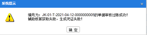 2、提示:輔助核算獲取失敗,生成憑證失??!