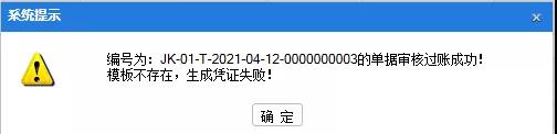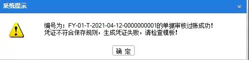 3、提示:憑證不符合保存規(guī)則,生成憑證失敗,請檢查模板!