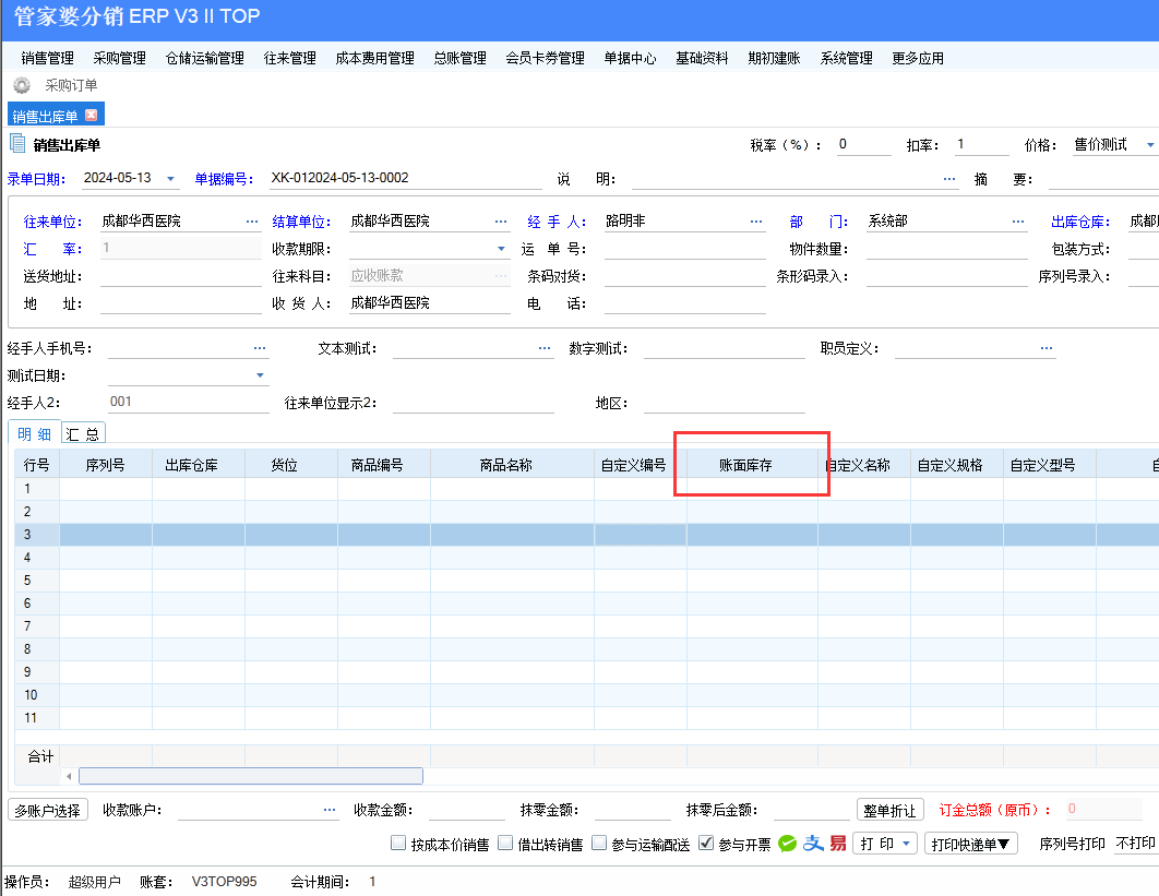 1、如果是admin登陸沒有該選項(xiàng),打開單據(jù)表體查看賬面庫存列字段有沒有增加顯示出來,單據(jù)表體沒有這個(gè)字段,【不顯示賬面庫存為零的商品】這個(gè)選項(xiàng)就不會(huì)顯示,表體右鍵增加一列把賬面庫存字段增加顯示出來再重新選擇商品即可。