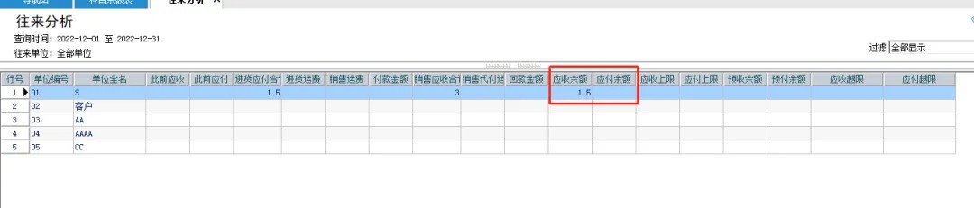 4、確認(rèn)上述步驟都是正常的,那么就能夠做最后一步的對(duì)比,用進(jìn)銷存-數(shù)據(jù)查詢-往來(lái)分析 對(duì)應(yīng)自然月時(shí)間,應(yīng)收余額-應(yīng)付余額計(jì)算出差額;