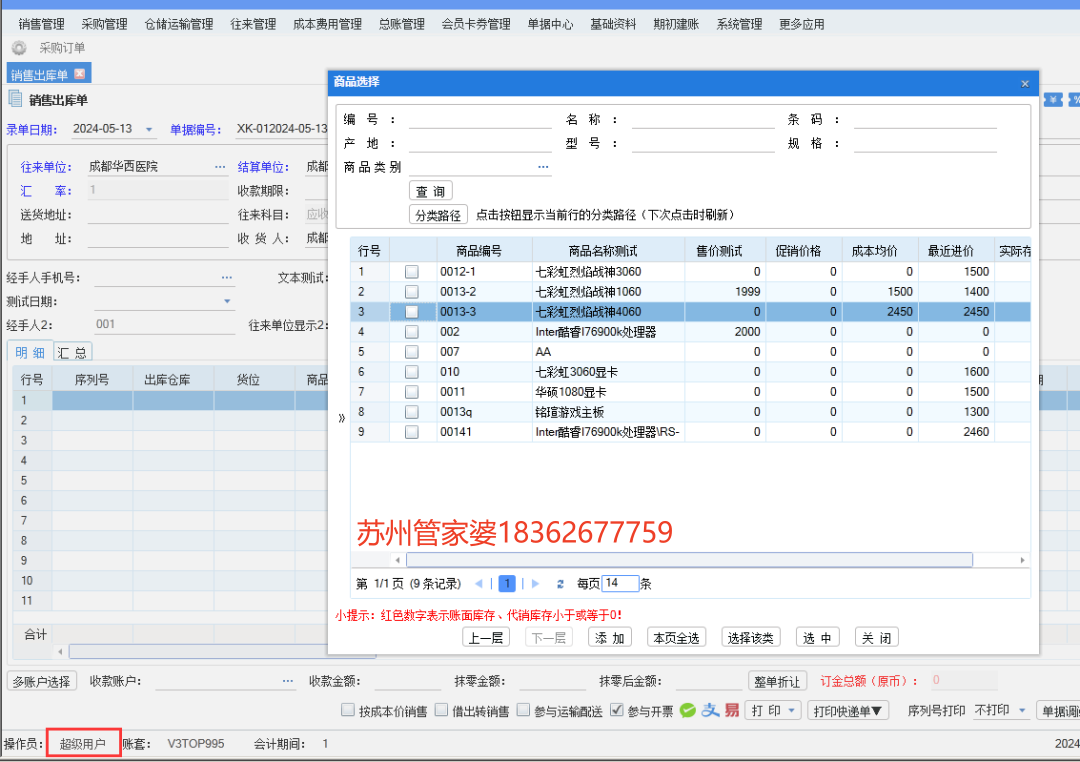 做單選擇商品/不顯示賬面庫存為零的商品/管家婆軟件